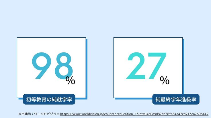多くの子どもが、留年や小学校をドロップアウトしてしまっている現状。