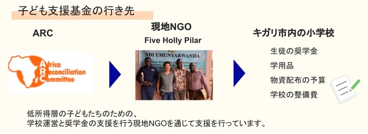 ルワンダの子どもたちの学費や学用品、制服や文房具などの教育支援と、事業の成果のモニタリングや、事業の実施に必要な経費などの運営費用として使用します。