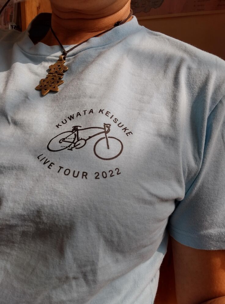 それがこの桑田さんTシャツ。あるいはあと2枚あって、1枚はサザン茅ヶ崎ライブのTシャツ、そしていつかそこで話をして桑田さんにラブコールを送ろうと思っている茅ヶ崎FM通称エボラジのTシャツなのだ。
