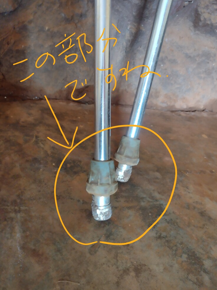 杖としてはまだ使える。でもその先につけているゴムがダメになっている。ガシガシと歩くので、ゴムがすり減り、底が抜け、体を成していない。でもそのまま彼らは使い続けている。