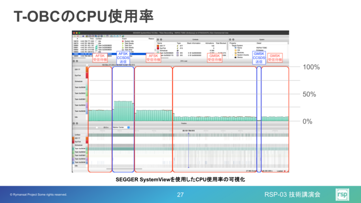 ソフトウェアでの処理が多いためCPU使用率もチェックしながら開発を行いました。