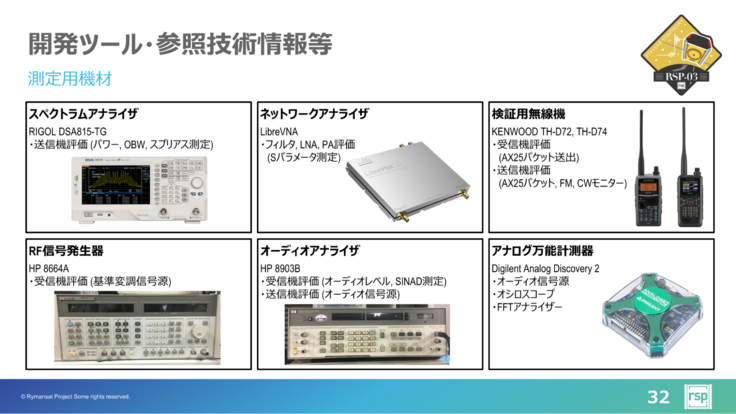 開発中に実際に使っていた測定機類も紹介されました。これから衛星の無線機を作る人には参考になるかも!?
