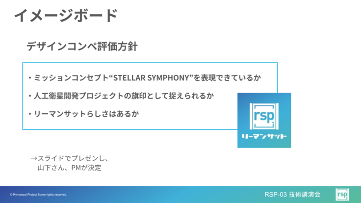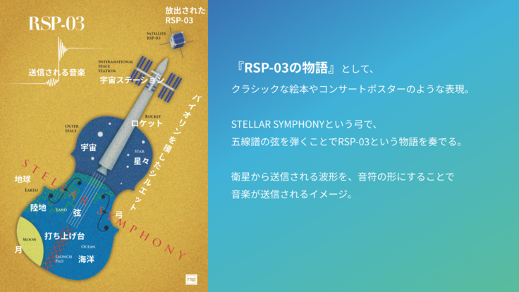 チームメンバーや関係する人々がこれを見て認識を共有できるように、RSP-03のコンセプトをグラフィックデザインで表現しなければなりません。