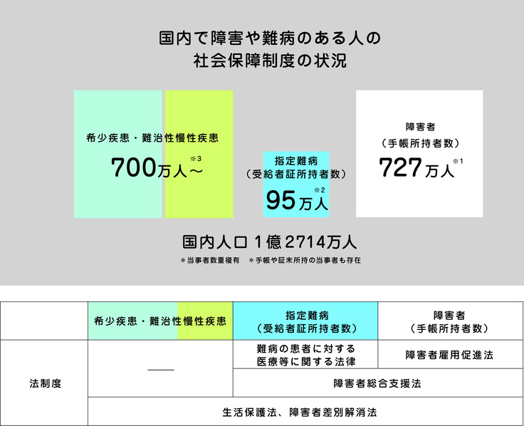 世の中には数千種もの研究途上の希少疾患や難治性慢性疾患があるとされており、社会が一つ一つ対応していたのでは、5000番目の疾患の人はいつになったら対応してもらえるのだろうかと、自身が医療保険の制度から漏れた経験からも気になりました。これらを踏まえ、病気の枠を超えて、ニーズや状況に応じて包括的な取り組みができないかと考えました。
