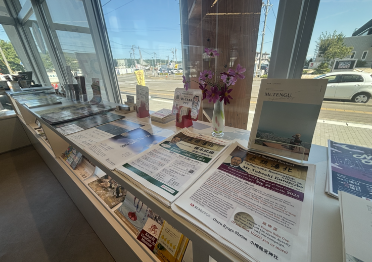 9月7日から、センターの観光案内所に龍宮神社、榎本武揚の書の修復に向けたクラウドファンディングを呼びかけるビラを置かせていただきました。この週末にお邪魔したら、日当たりがよく開放的な空間にビラが置かれているのを見つけました。小樽観光協会の皆さま、ご協力本当にありがとうございます。