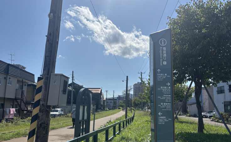 旧手宮線。皆さまがこの道を歩くときには、どのような想いになられるでしょうか。道すがらこの「龍宮通り」の看板を見かけたら、よければ海を背に山側に見える鳥居の先、龍宮神社へもぜひお立ち寄りください。1日で筆者が書ききれないように、たくさんのドラマに巡り会えるはずです。