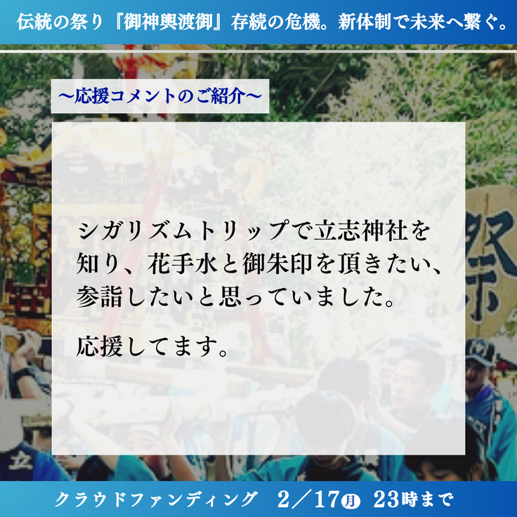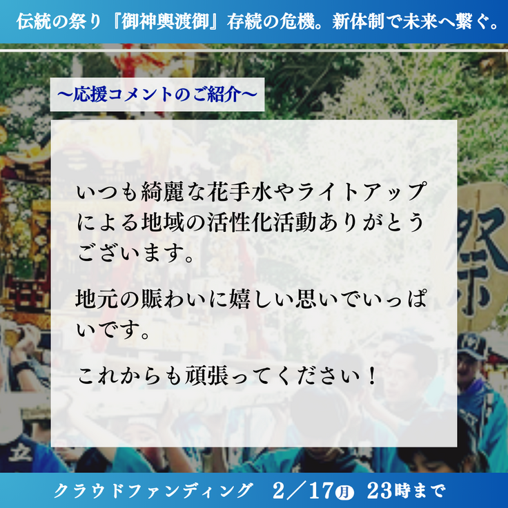最終日は、御神輿の鳳凰のお写真と皆様からの応援メッセージをご紹介いたします。