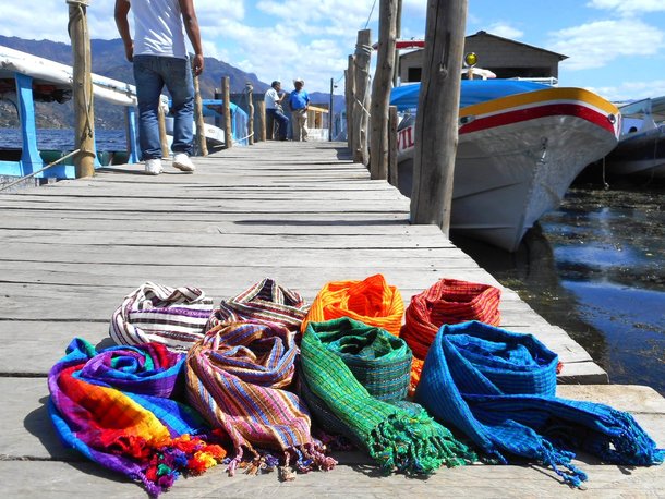 「グアテマラレインボー」にふさわしい色彩を天然染めで再現。グアテマラの織り手の職人によって丁寧に織り上げていきます。素材は綿。バッグにコンパクトに収納できるので、旅やちょっとしたお出掛けにピッタリなストールです。