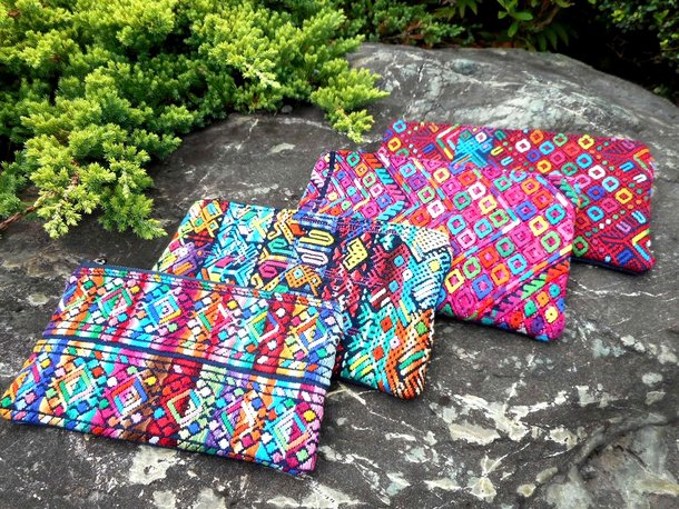 女性の民族衣装ウィピル(上衣)の古布と遠州浜松のリネンを使用。小物の出し入れだけで元気がでる鮮やかなデザイン。グアテマラの繊細な手仕事の魅力が楽しめるポーチです。裁断、縫製は日本の自社工房にて副代表が自ら丁寧に行います。