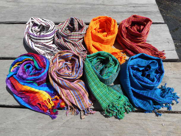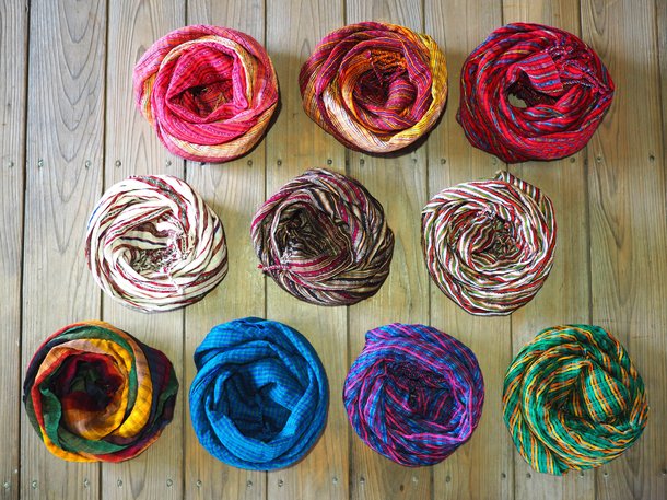 *手織りのレインボーストールは現地に拠点をつくり、天然染め技術が安定してからの発送となります。(2019年3月発送予定)
