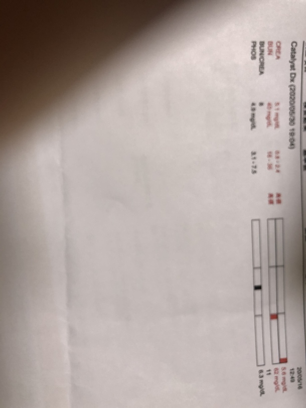 くみんの腎臓の数値は、最初行った4月27日には、血液検査では全て振り切っていました。