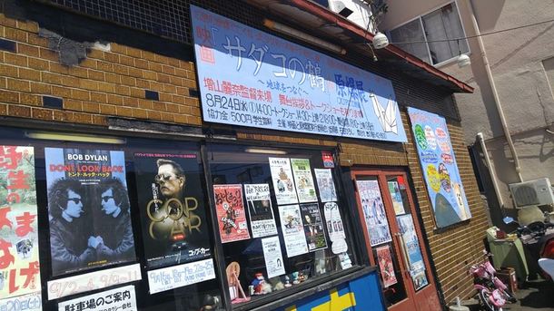 秋田大館の名映画館・御成座で手作りの看板を往年の巨匠作品ポスターの隣に
