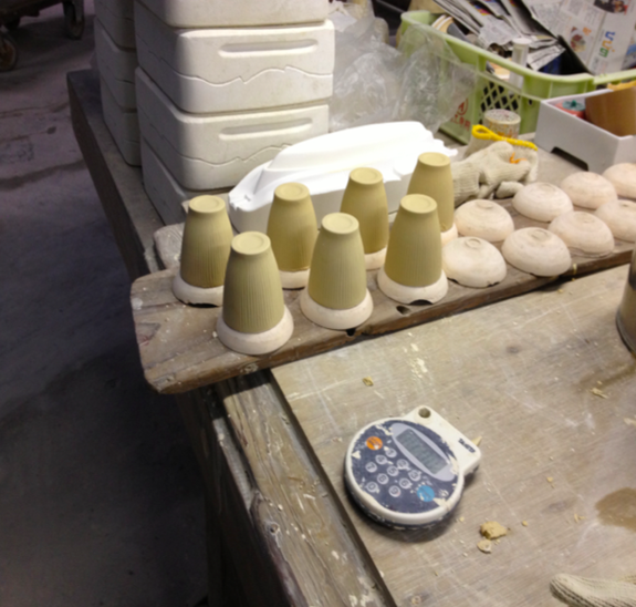 土を型に流しこみ、元となる形を作ります。