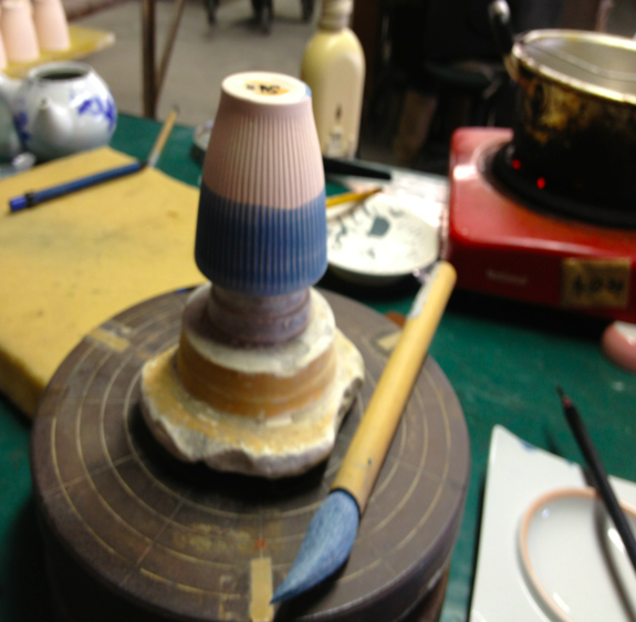 呉須という焼き物専用の顔料を使い絵付けしてゆきます。