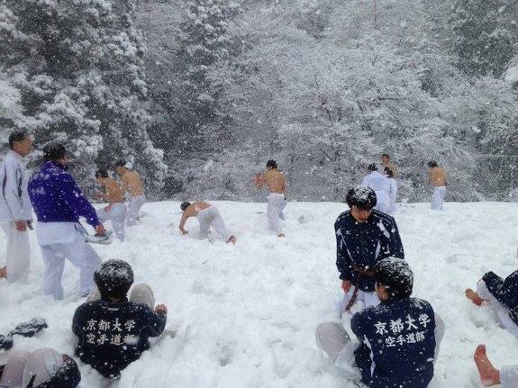 私は、小学生の時より空手を続けており、大学では空手道部に所属しています。改めて考えるともう15年目になっていてビックリしました。そんな私も、今年初めての体験をすることが出来ました。それは「雪山での寒稽古」です!昨年は寒稽古で琵琶湖に入りもうこりごりだったのですが、OBの話によると、どうやら雪山で稽古する年はそれとは比べものにならないらしい、ということは聞いておりました。そして迎えた雪山。やはりそこは想像を絶する世界が...つま先の感覚はなくなりましたが、精神はきっちり鍛えられたような気がします。