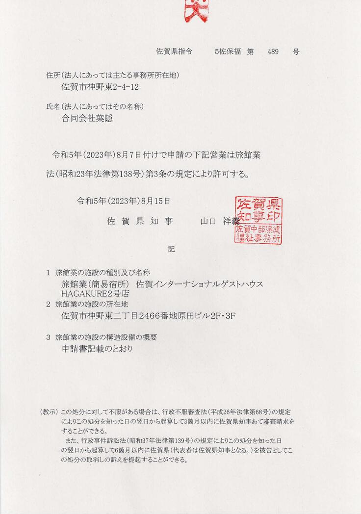 8月15日に簡易宿所営業の許可を取ることができました。