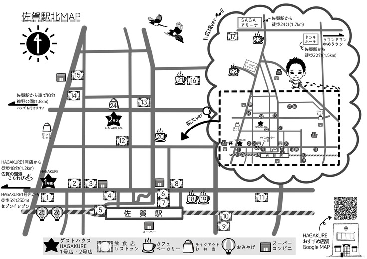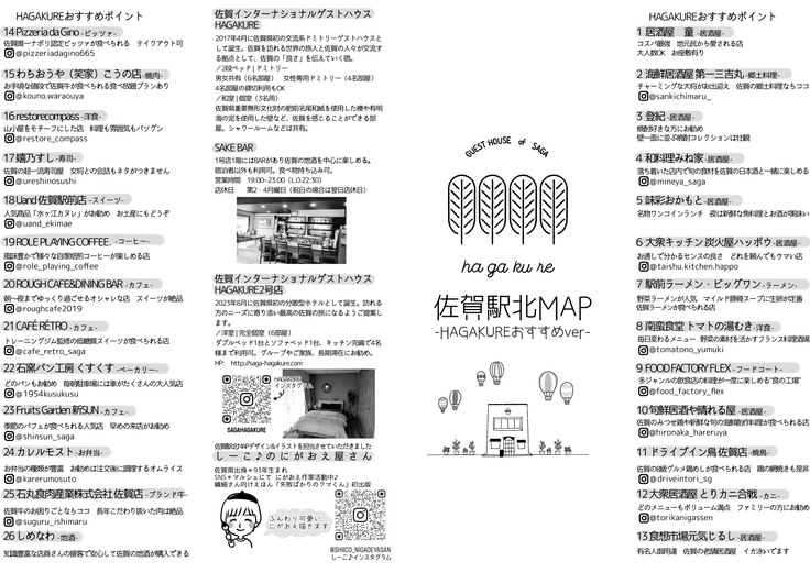 1号店・2号店ともに佐賀駅北エリアにあり、素泊まりのみであるため近隣の飲食店さんを紹介するオリジナルマップを作成しました!!