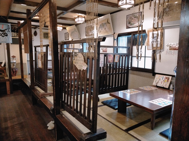 店内に入るとまず目の前に現れるのが2つの生け簀です。「おっ、今日はなんの魚が泳いでいるのか」とワクワクした気分にさせてくれます。刺身好きにはたまらないお出迎えです。タイミングが良ければ呼子のイカが泳いでいる姿を佐賀市内にいながら見れるなんて事も。