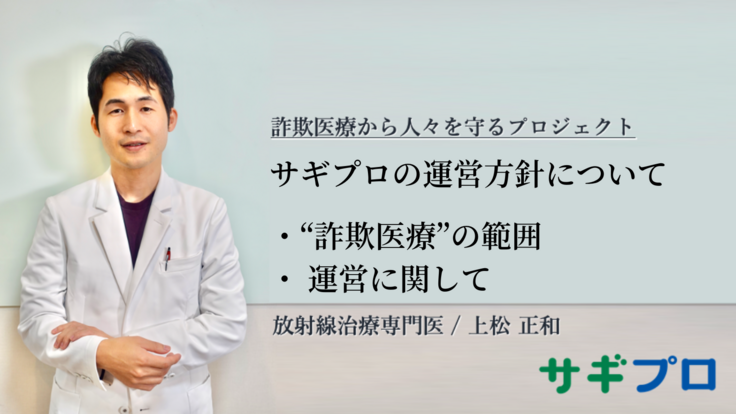 サギプロでは悪質な詐欺医療に対しては厳しく追求しますが、不適切な医療に対しては適切な情報の提供なども解決の選択肢にし、医療界全体の向上に貢献できる仕組みを取り入れて参ります。