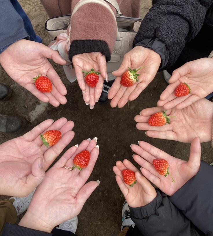 それぞれお気に入りのいちごを手に記念撮影!!いちごってなんでこんなに可愛いんでしょうね。