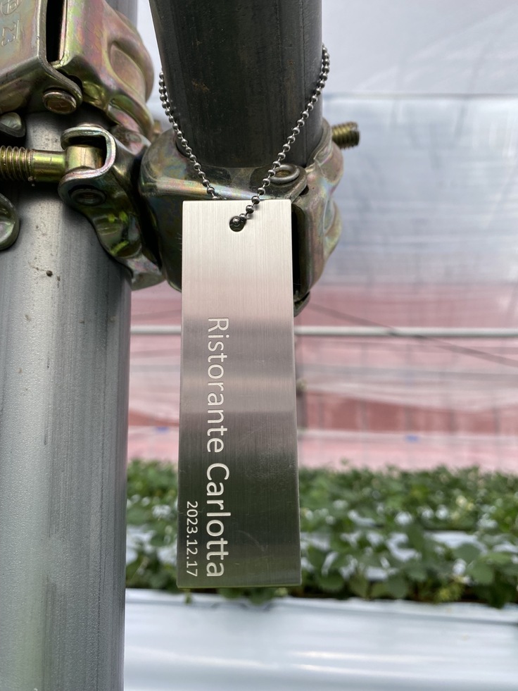 「いちごハウスの柱に名入れ」の取り付けのご報告です。