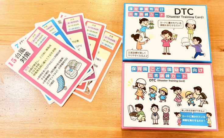 最近では福祉事業所のBCP策定は進んでいます。ただ、「日常の業務が忙しい」「専門的知識が無く効果的な訓練ができない」という現場の皆さんの声も多く聞かれます。このニーズにお答えして、現場で手軽に、短い時間でできる訓練カードを作成し、販売もしています。
