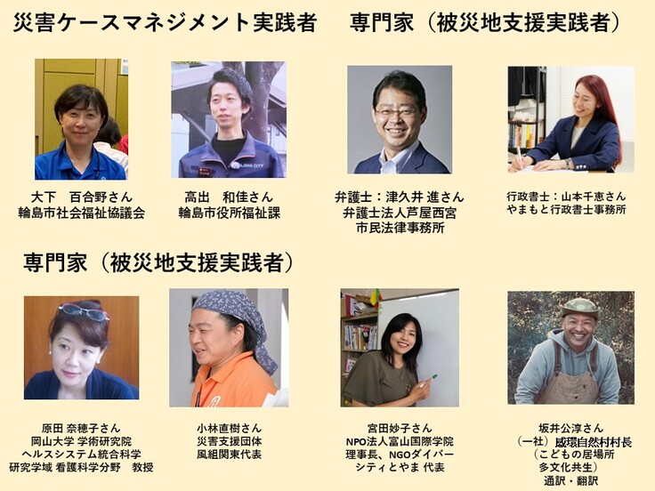 ツールは能登半島地震で甚大な被害のあった輪島市で災害ケースマネジメントの実践をされている方や、過去の災害で被災地支援を行った経験のある専門家の方にアドバイザーをお願いします。
