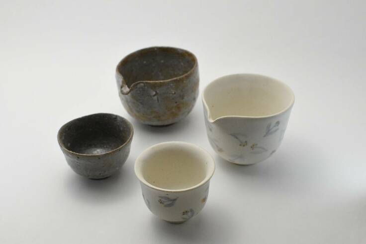 三々窯さんは、開窯当初からの特徴である、ご夫妻それぞれの作風の違いがよく表れたペアの品となっています。
