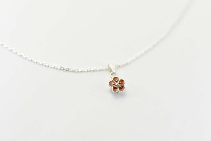 フクラクラフトさんのペンダントは銀粘土を用いた細工に七宝焼をポイントにした一品。