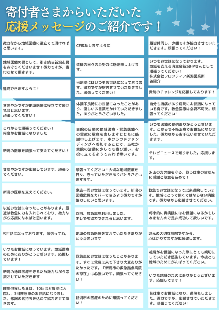 引き続き、新潟の地域医療を守るため、温かいご寄付をよろしくお願いいたします!