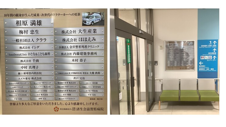一定額以上のご支援をいただきました方のお名前を記載した銘板が完成しました。病院1階救急センター通路に設置しましたので、ご来院の際にご覧いただければと思います。