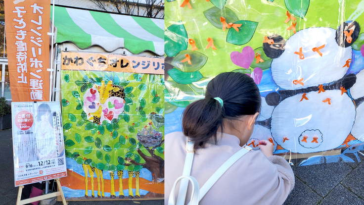 そこでは、“安心して暮らせる街・川口”をこどもたちが自由に表現した壁画に、来場者が思い思いにオレンジリボンを貼っていました。