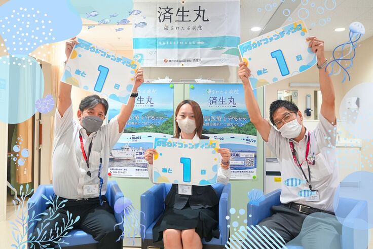6月2日から開始したクラウドファンディングも、あと1日となりました。8月29日23時まであたたかいご声援をお願いいたします!また、想定を超える多くのご支援と、お一人おひとりの応援コメントに心から感謝申し上げます。今後も離島の医療を支えるために済生丸スタッフ一同、頑張ってまいります。