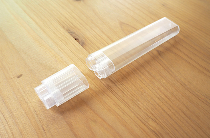 また、外装はパーツが1つ。できる限りシンプルな構造で透明にしたので、インクの残り量がはっきり見えます。