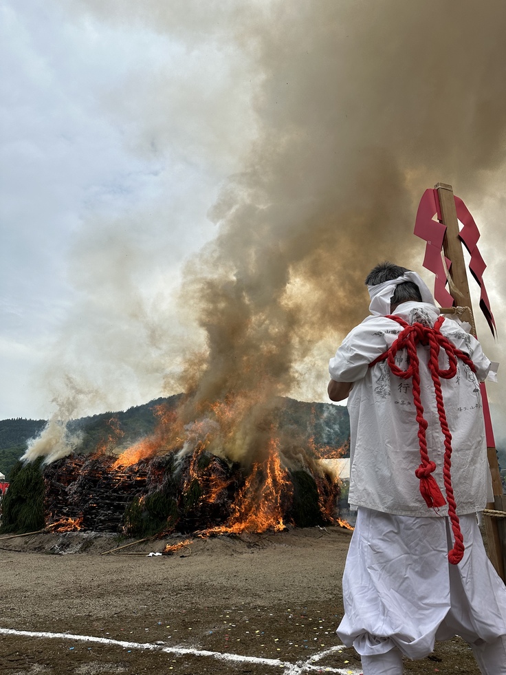 大きか燃え上がる炎で穢れが祓われ、祭場内で修奉者によって気迫のこもった行われる神事に、参列者も釘付けになっておりました。