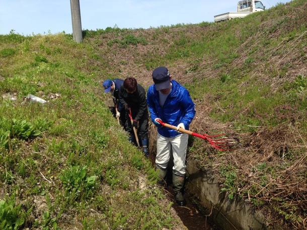 田んぼの用水路掃除、部落総出32名で約1.5kmの区間の泥あげ実施しました!