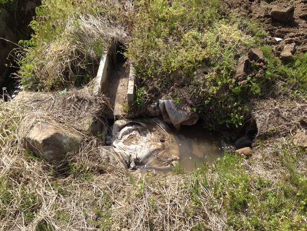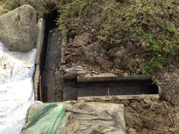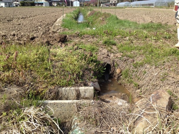 土の用水路は削れてしまうのでU字溝を埋めて土嚢で固めて水がちゃんと流れるように補修しました!