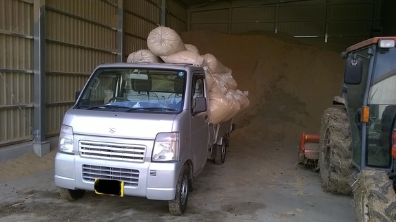 遅い時間で恐縮ですが、本日は排水資材の籾殻を集めてきました。
