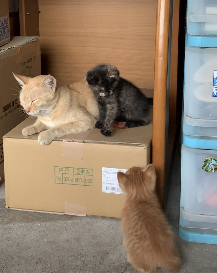 2021年5月に働いているお店(クリーニング店)で3匹産んだ母猫がいました。