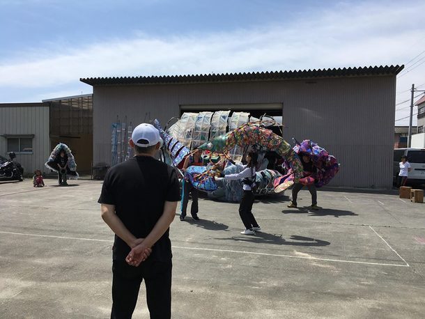 このプロジェクトは、私たちがつくる「巨大人形劇さんしょううお」を8月の世界人形劇フェスティバル(長野県飯田市)で上演するとともに、上演に向けた活動を通して若者たちに経験を伝えることを目標としたものでした。