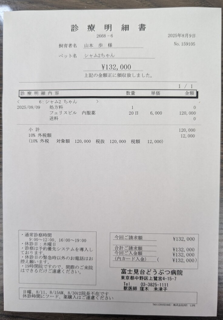 皆様の温かいご支援を医療費にあてさせて頂きます
