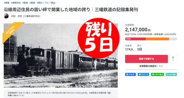 9月からスタートしたクラウドファンディングも残すところあと5日となりました。