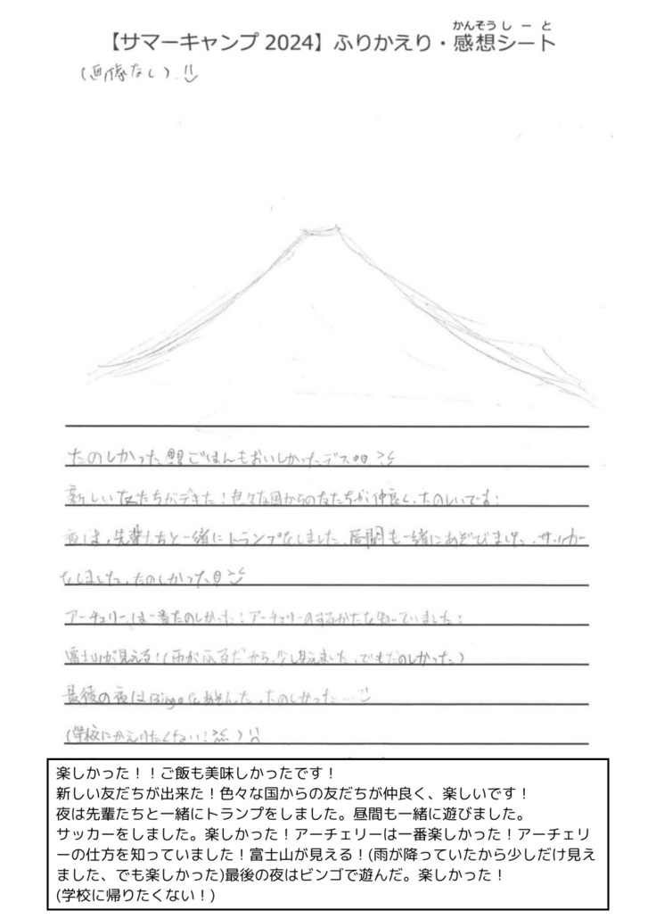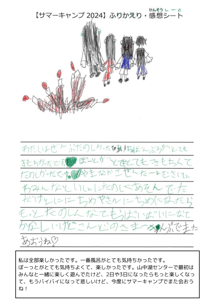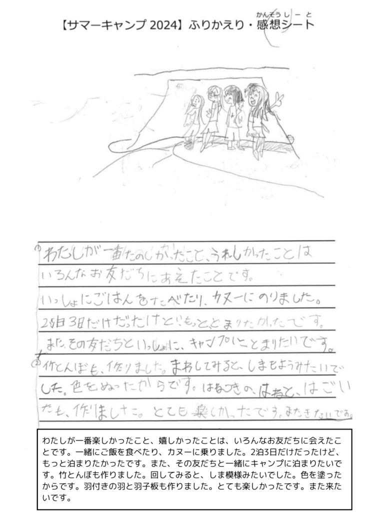 本日は昨年のキャンプに参加した子どもたちの声を紹介いたします!