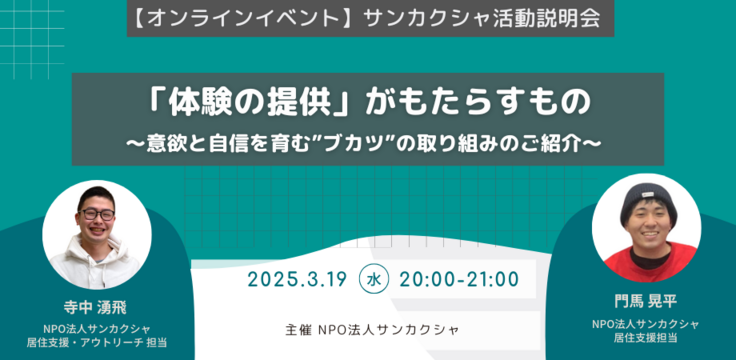【オンライン活動説明会】「体験の提供」がもたらすもの(3/19夜開催)