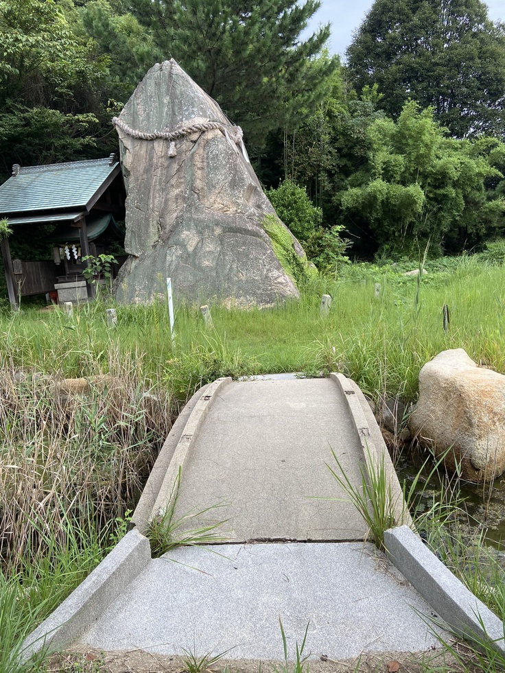 【三秀園と島のシンボルであるメンヒル】地下2m地上5mの巨石