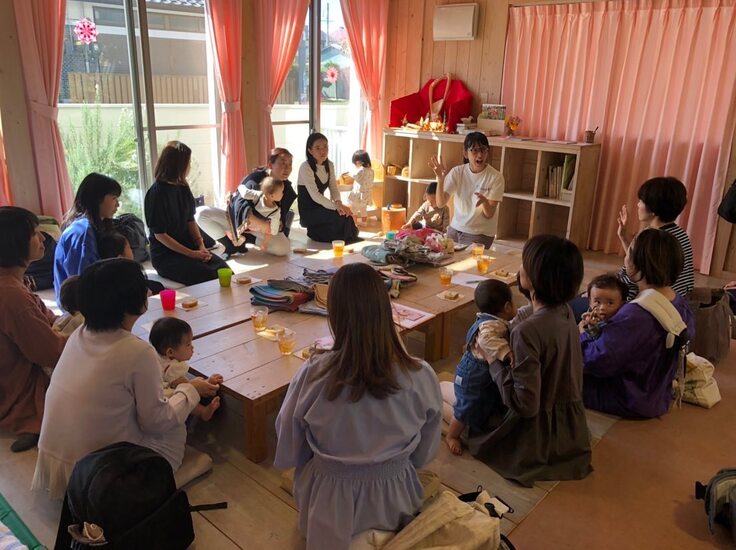 セシリアの『ひかりの部屋』を使って、新米ママ・パパと、セシリアのママ・パパがお互いに悩みを相談できたり、交流できる場所にしています。毎回多くの皆さまに参加いただき、定員オーバーの人気ぶりです。