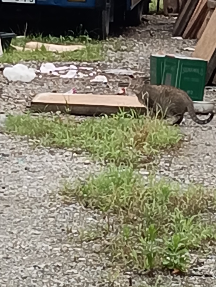 早速に去年にサビの子が産んだキジトラの子がやって来ました。この子の母親のサビは1週間ほど前に捕獲して避妊手術をしました。
