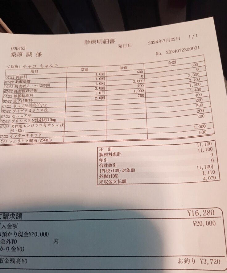 今月だけでチャコちゃんの医療費が20万円を超えてしまいました。