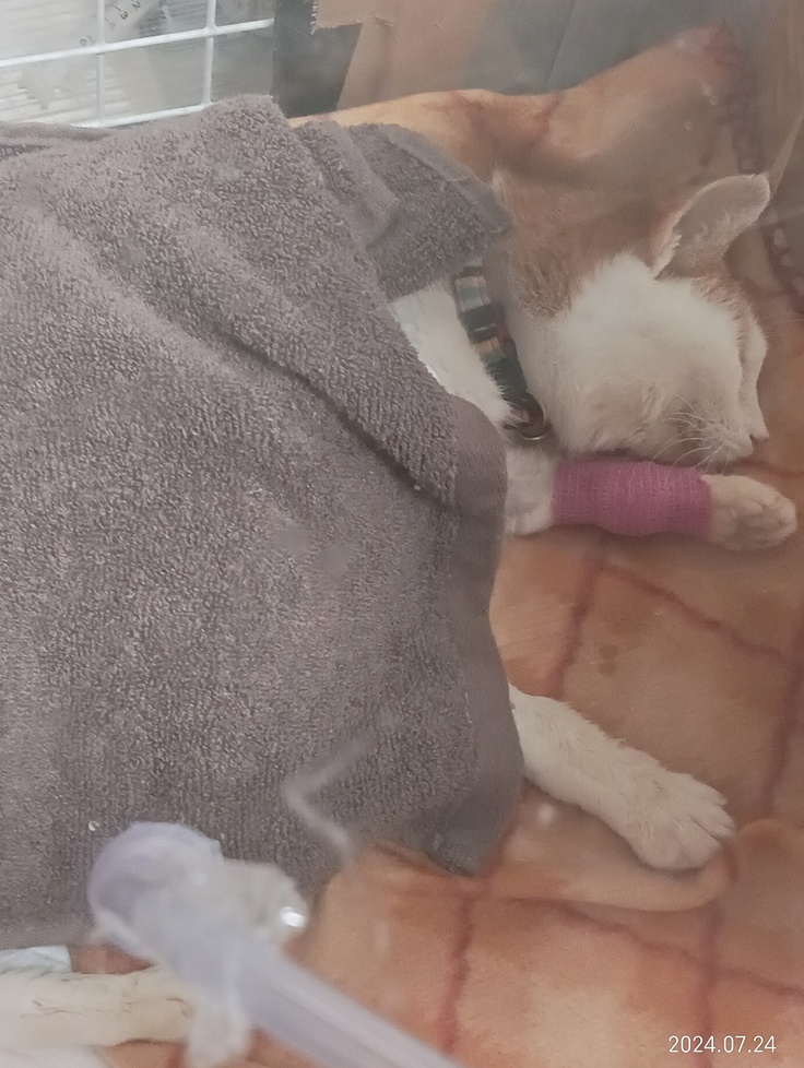 ヘマトクリットが酸素を必要とするぐらいに下がっていましたから再度の輸血をと思い前回に輸血して貰った病院に供血猫を連れて行き適合検査をしましたが残念ながら適合しませんでした。
