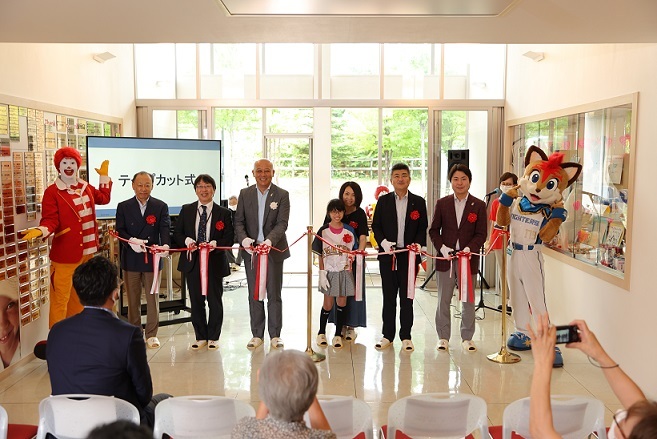 天候の関係で、ほとんど室内での開催となりましたが、ドナルドや、フレップくんも参加してくれて、賑やかで楽しい式になりました。